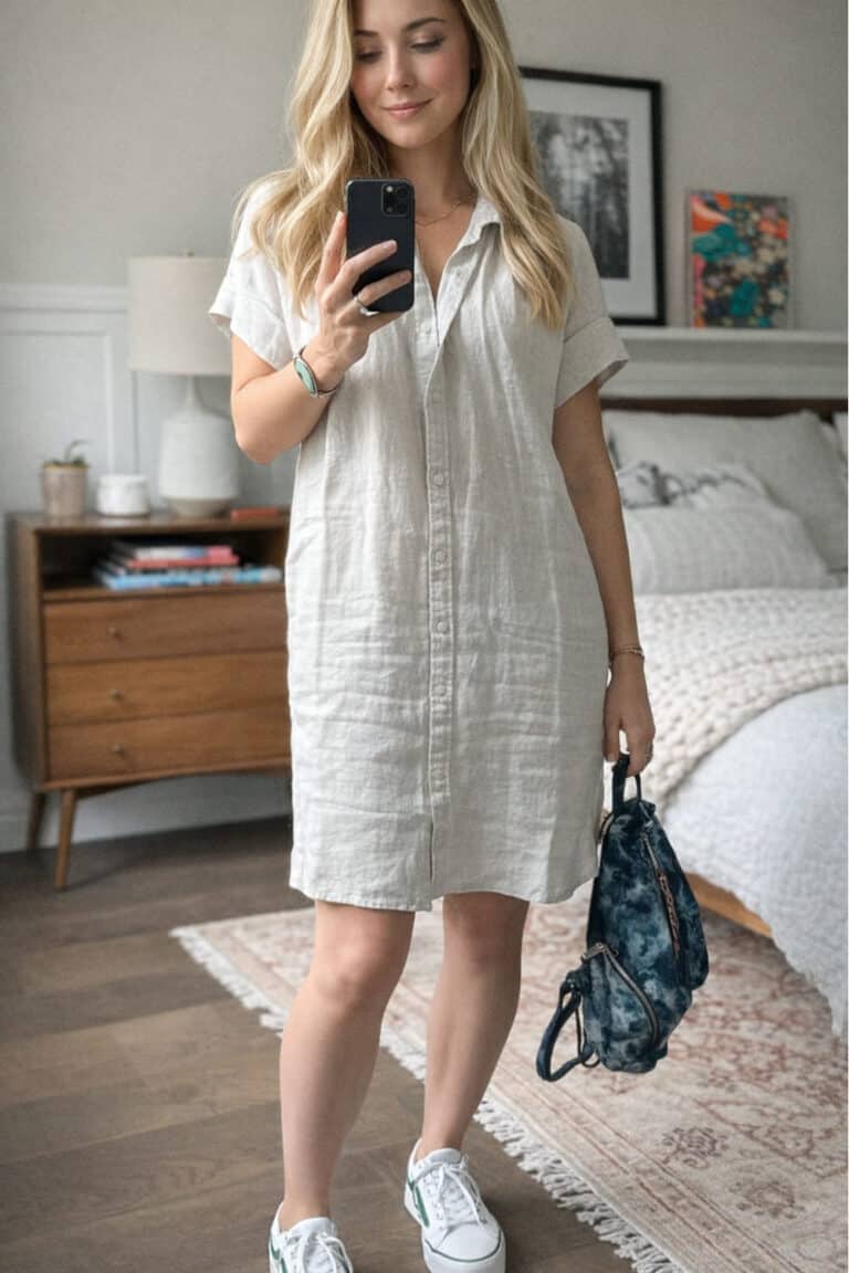 Linen is peak summer energy. It’s light, breathable, and gives you that “I’m chill but still stylish” vibe. Linen button-up dresses are so easy and look put together even when you’re sweating through July.