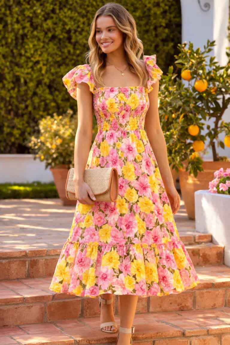 Smocked dresses are iconic for summer. They stretch, they fit every body shape, and they stay comfortable all day long. I wear mine for beach days, casual date nights, and picnics.