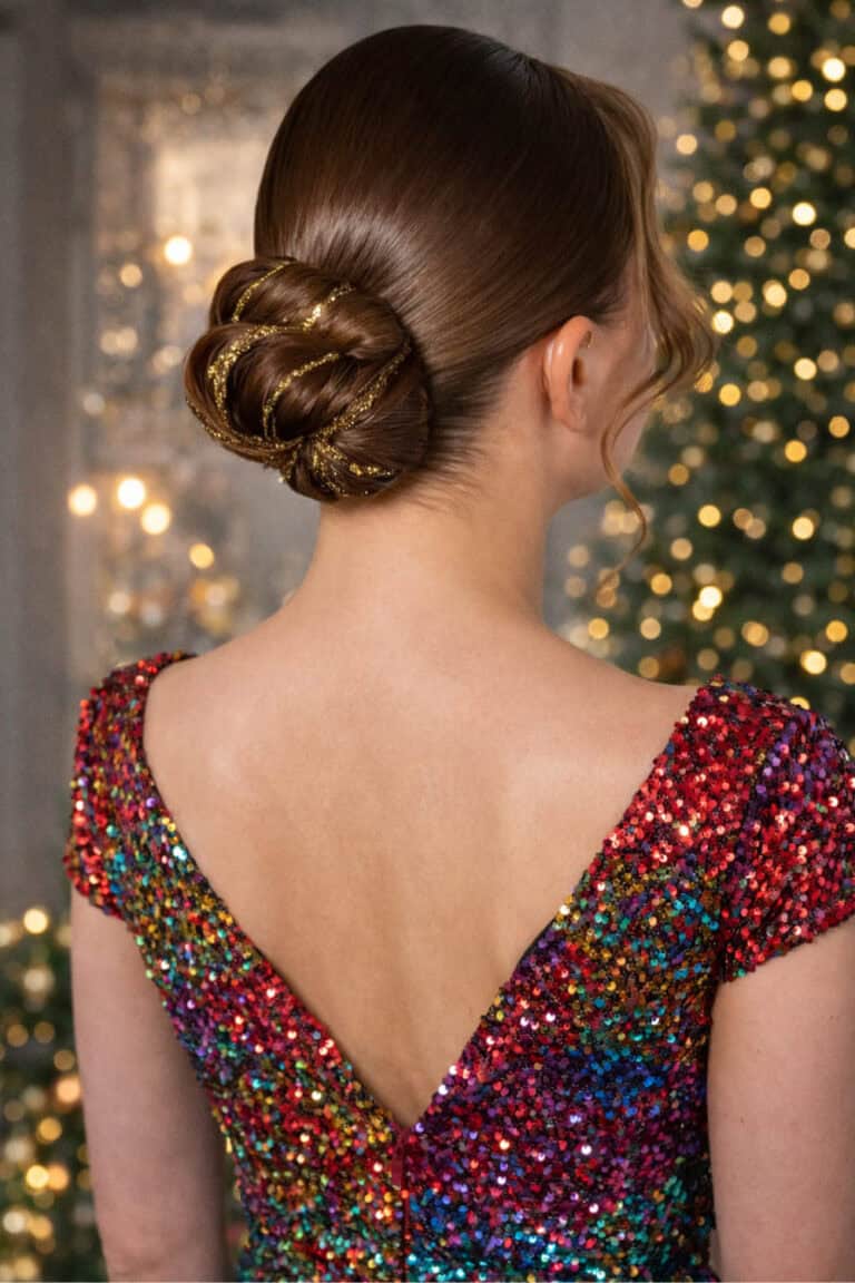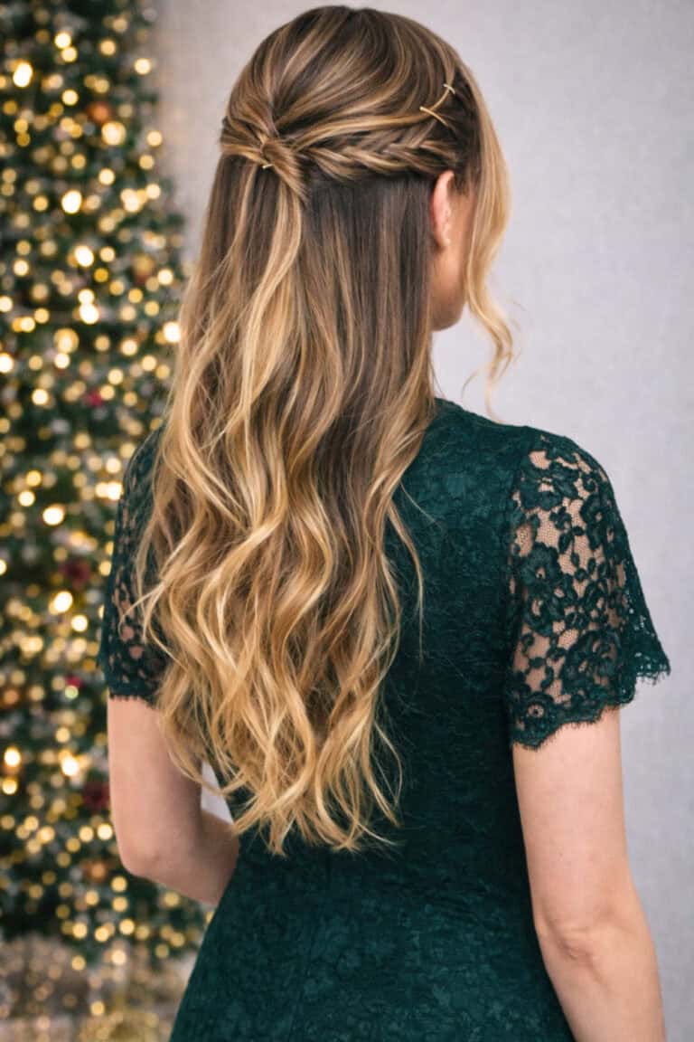 It feels elegant without being stiff, festive without trying too hard, and perfect for holiday parties where you want your hair to look done but still move.