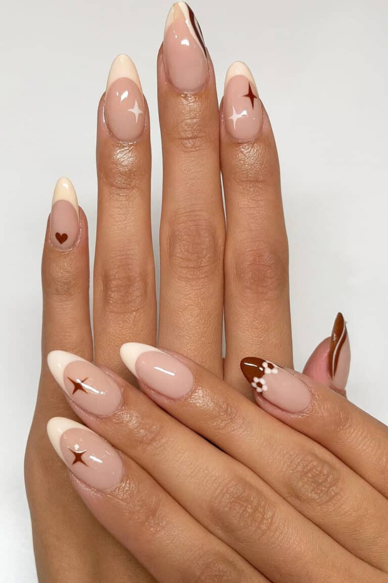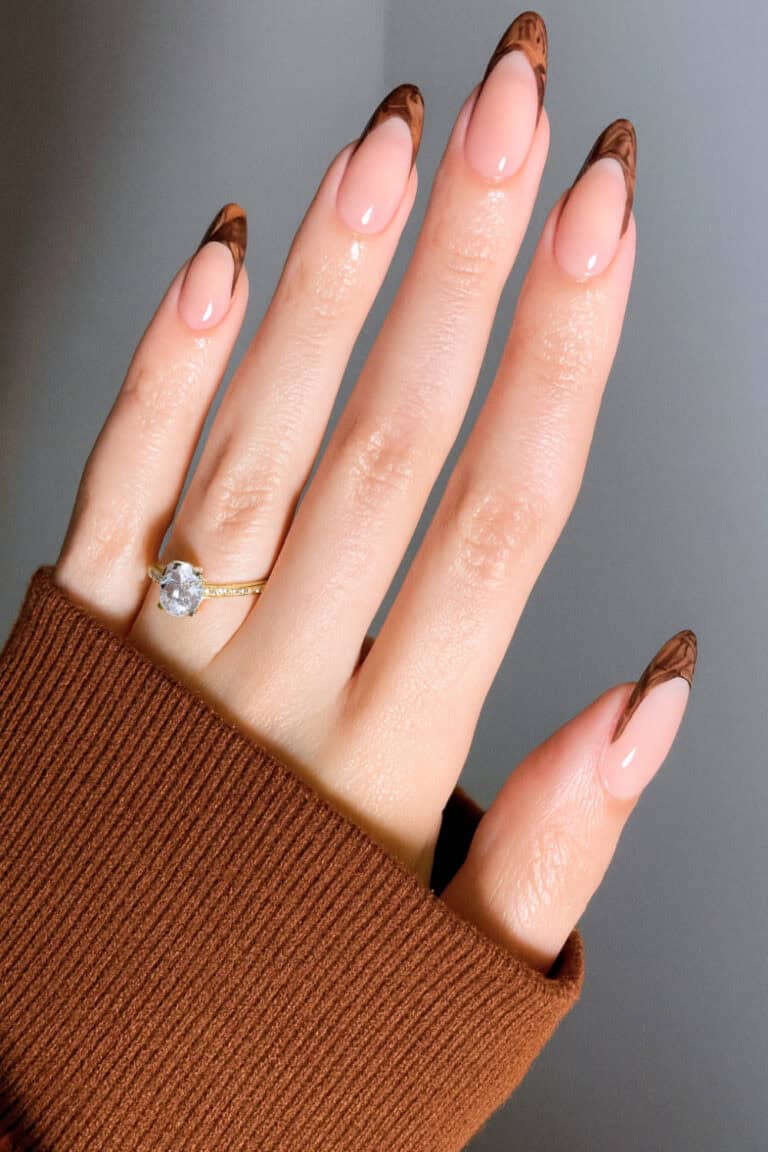The brown marble tips give that perfect mix of cozy and classy, like a latte in nail form.