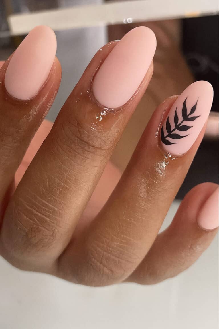 The matte blush pink base keeps it minimal, while that tiny black leaf design adds the perfect touch of fall aesthetic.