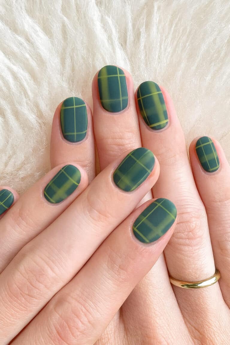 10. Green Plaid Nails