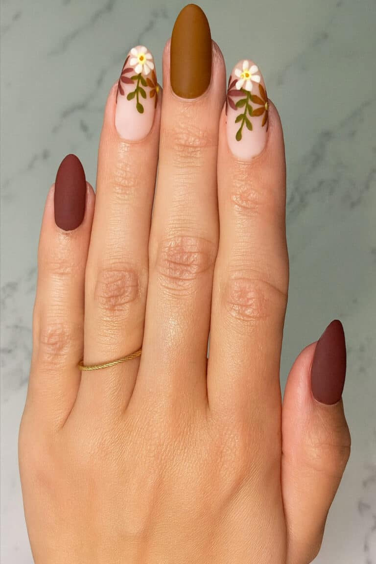 5. October Matte Leafy Nail Design