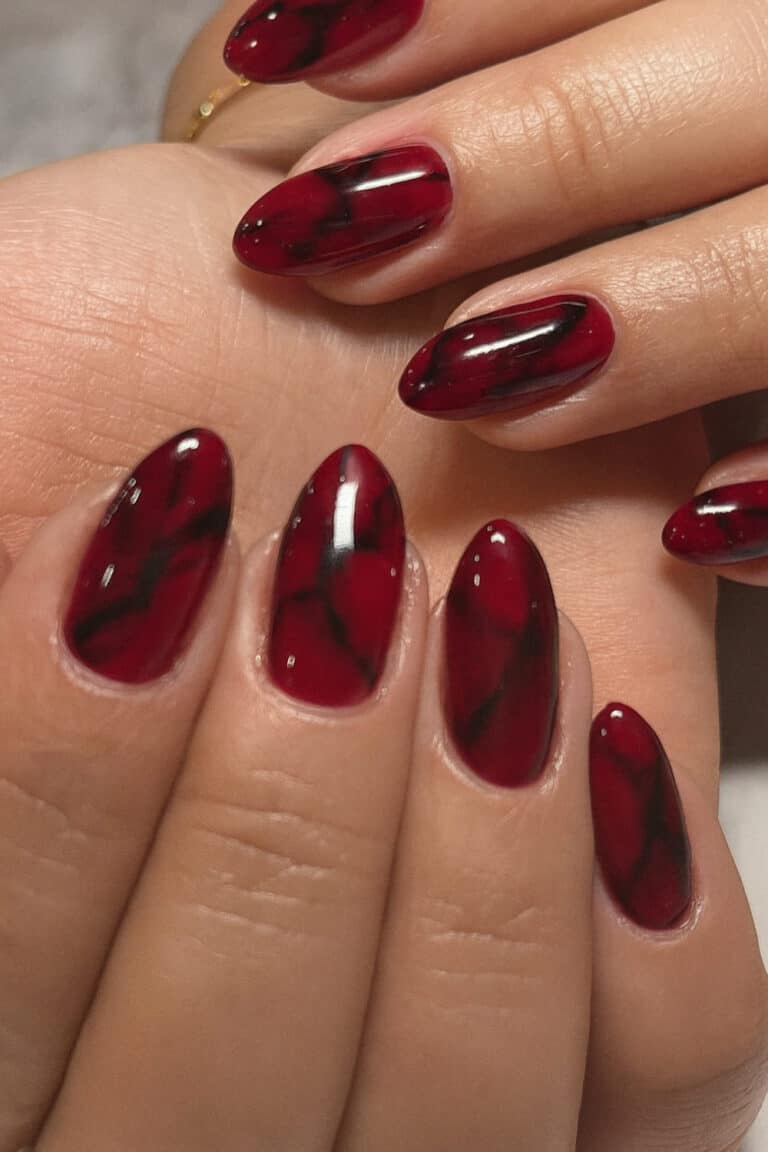 The marbled vibe gives them that dark, glossy, almost vampy look that screams “October but make it chic.”