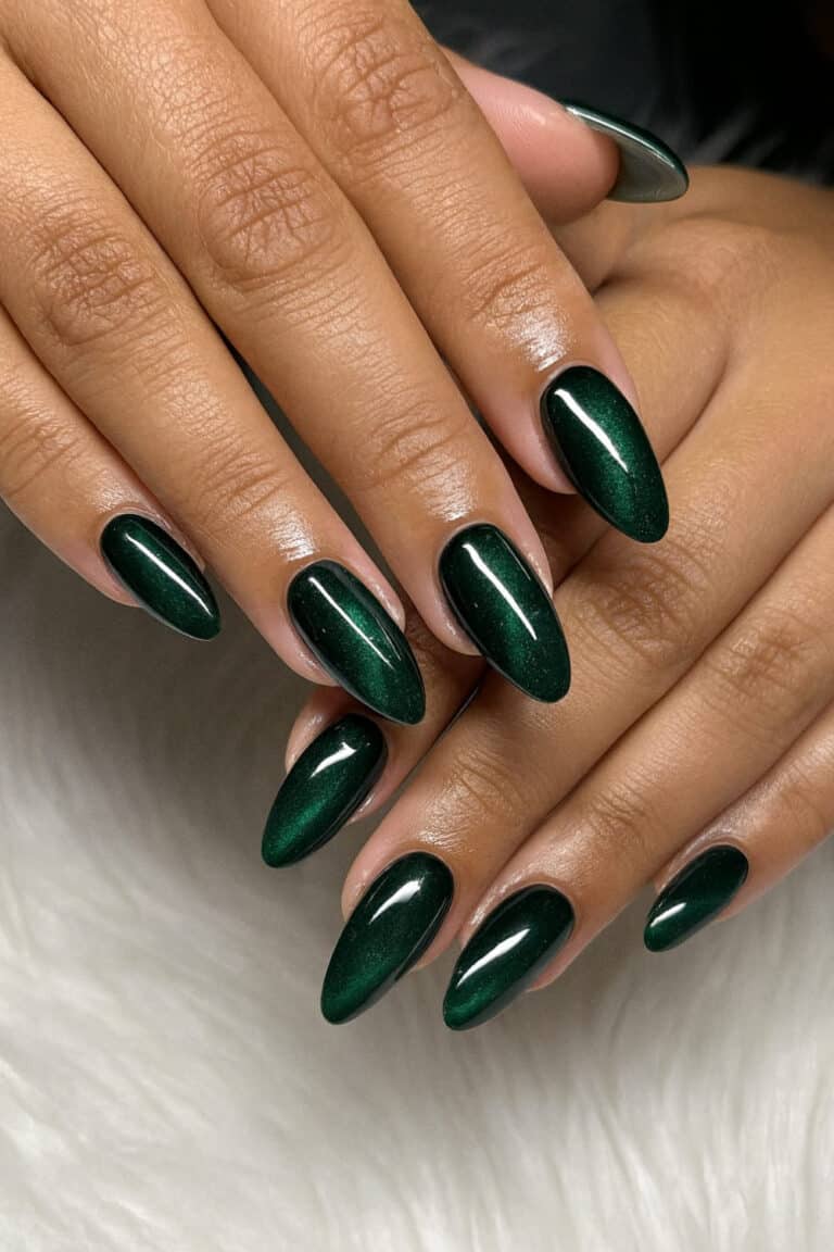 The deep green shade catches the light just right — rich, glossy, and totally giving “main character in a cozy fall movie.”