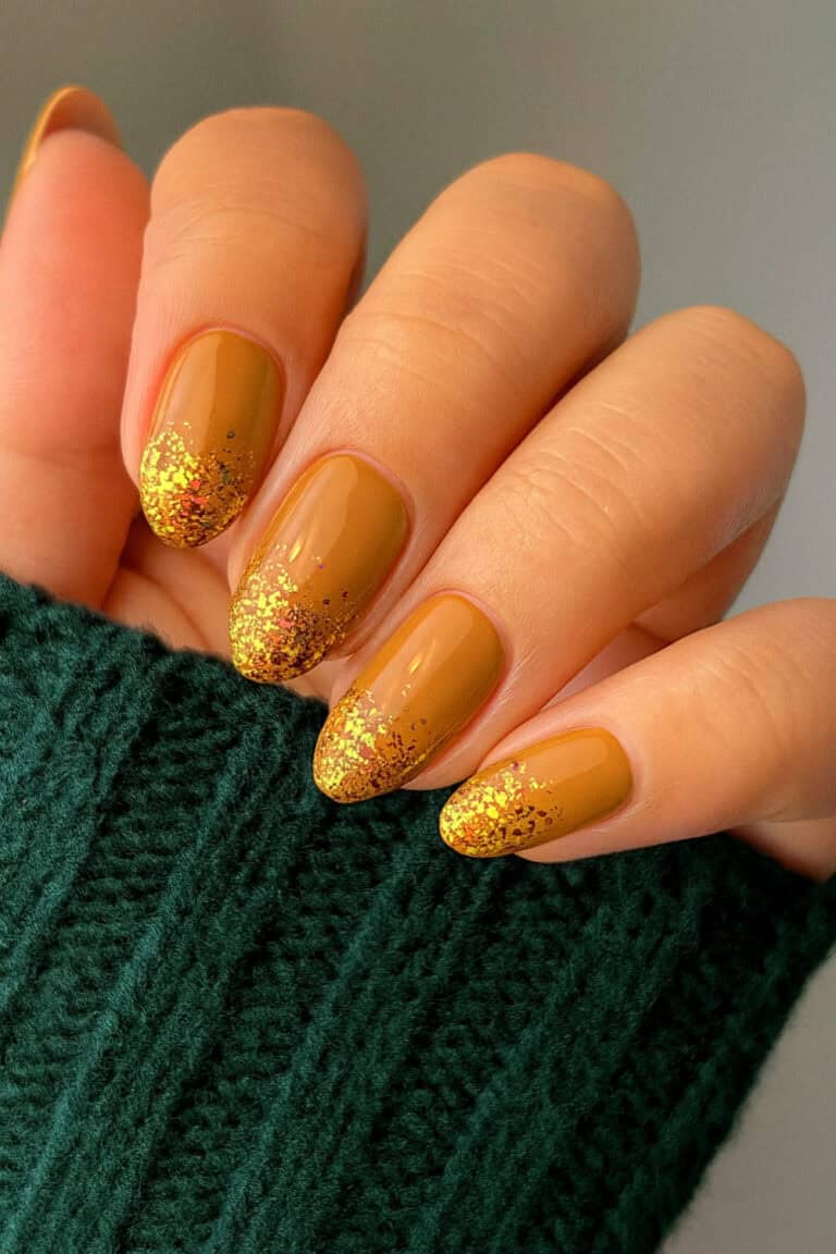 So underrated but totally serving pumpkin latte energy. And that gold glitter fade? It’s like the perfect mix of cozy sweater weather and “I’m still extra.”